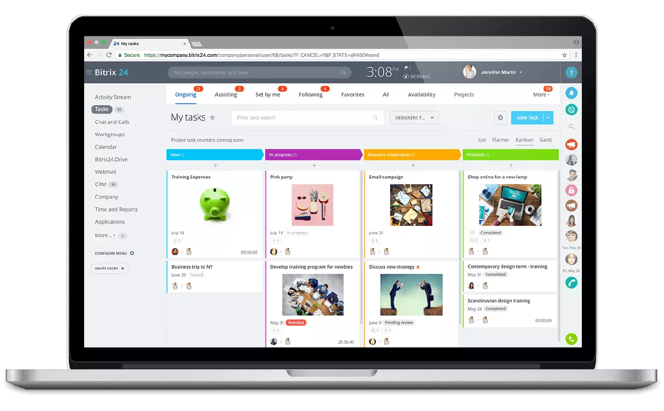 Bitrix24; tanımlamanız, yapılandırmanız ve atamanız gereken her şey için yardıma hazır. Üretkenliği artırmak da iş akışını yönetmek de projeleri tamamlamak da hiç bu kadar kolay olmamıştı. İşinizle ilgili en sevdiğiniz şeyin tadını çıkarın ve gerisini otomatik pilota bırakın.