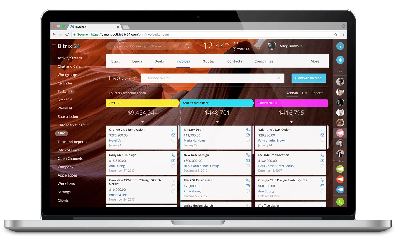 Bitrix24, bir grup insan tarafından satış, pazarlama, proje yönetimi ve diğer faaliyetler için kullanılmak üzere tasarlanmış çevrimiçi bir çalışma alanıdır. CRM, görevler, sohbetler, çevrimiçi toplantılar ve 30'dan fazla araç içerir.