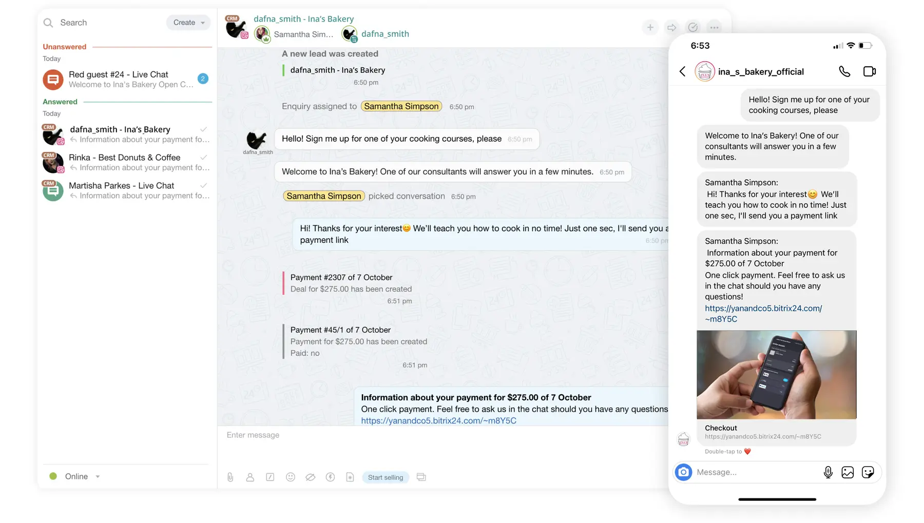 Siparişleri çevrimiçi olarak alın ve işleyin. Ödemeleri doğrudan CRM'nizde kabul edin ve siparişlerin müşterilerinize teslim edilmesini sağlayın. Siparişleri çevrimiçi takip edin. Hepsi Bitrix 24 içinde.