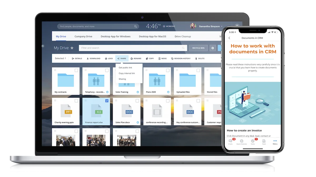 Bitrix.Drive'ı kullanarak tüm belgelerinizi ve dosyalarınızı tek ve güvenli bir alanda oluşturun, düzenleyin ve paylaşın.
