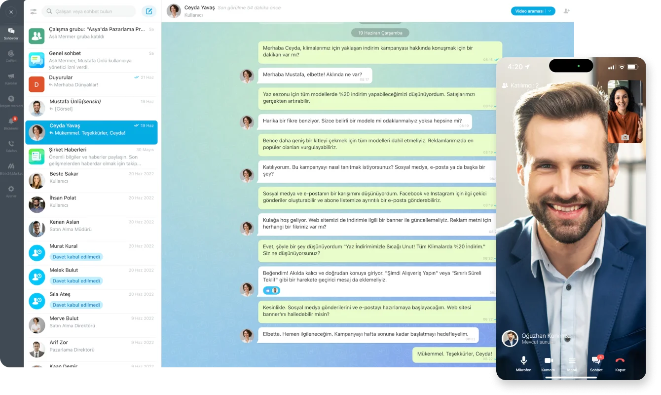 Uzak olsun ya da olmasın, çalışanlarınız her zaman çok çeşitli iletişim araçlarına sahip olacak - sohbetler, sesli aramalar, görüntülü aramalar ve konferanslar.