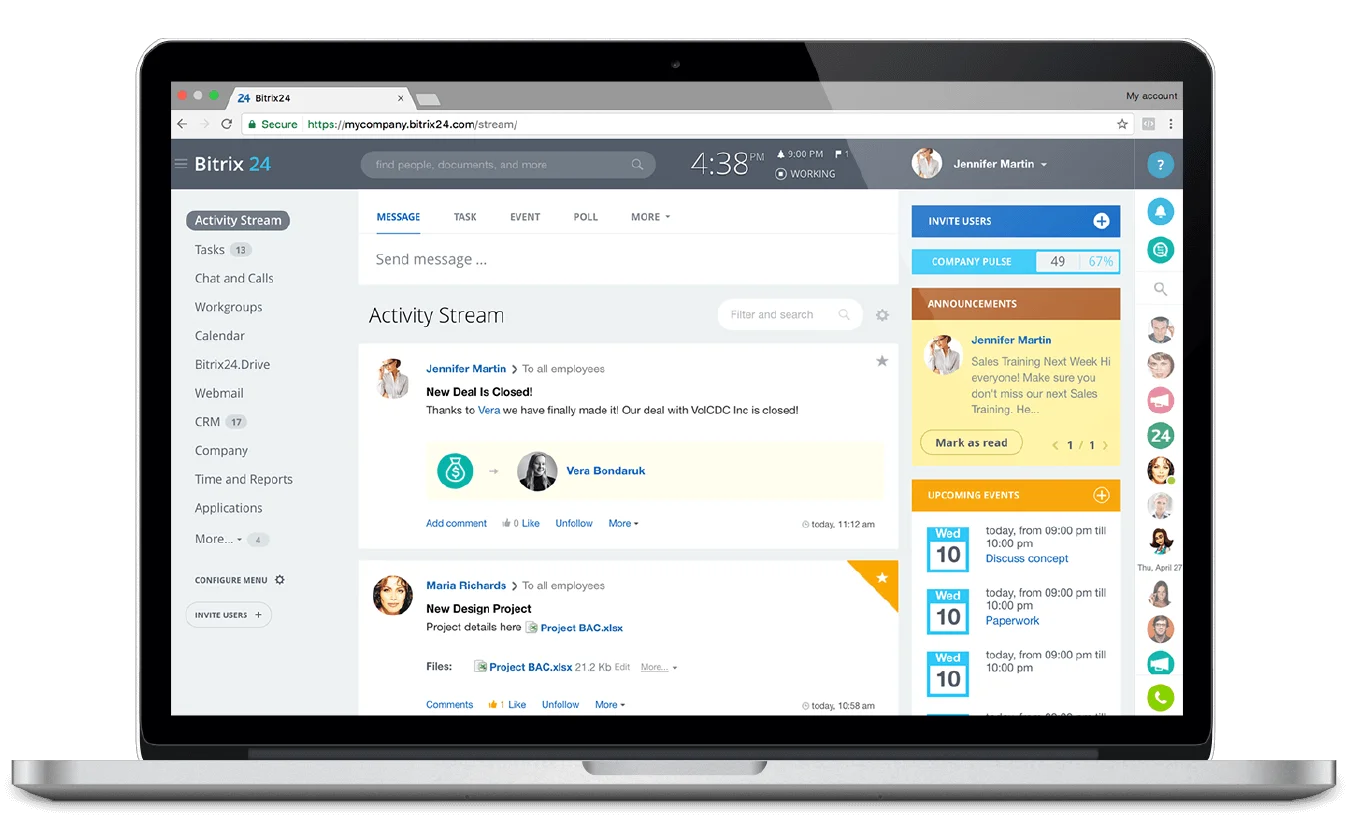 Bitrix24, bir grup insan tarafından satış, pazarlama, proje yönetimi ve diğer faaliyetler için kullanılmak üzere tasarlanmış çevrimiçi bir çalışma alanıdır. CRM, görevler, sohbetler, çevrimiçi toplantılar ve 30'dan fazla araç içerir.