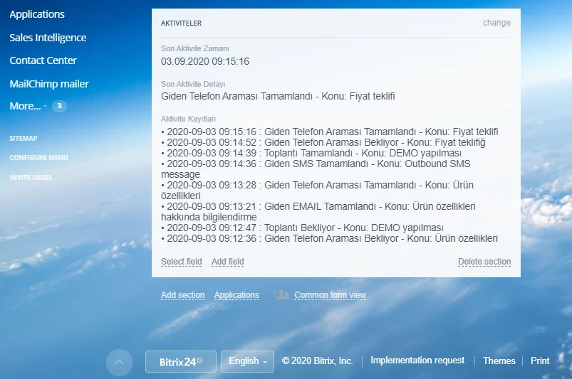 GLOBALNET Bitrix24 Aktivite Takip Uygulamamızın özellikleri;