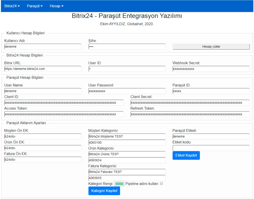 Bitrix24 – Paraşüt Entegrasyon Yazılımı Ayar Paneli