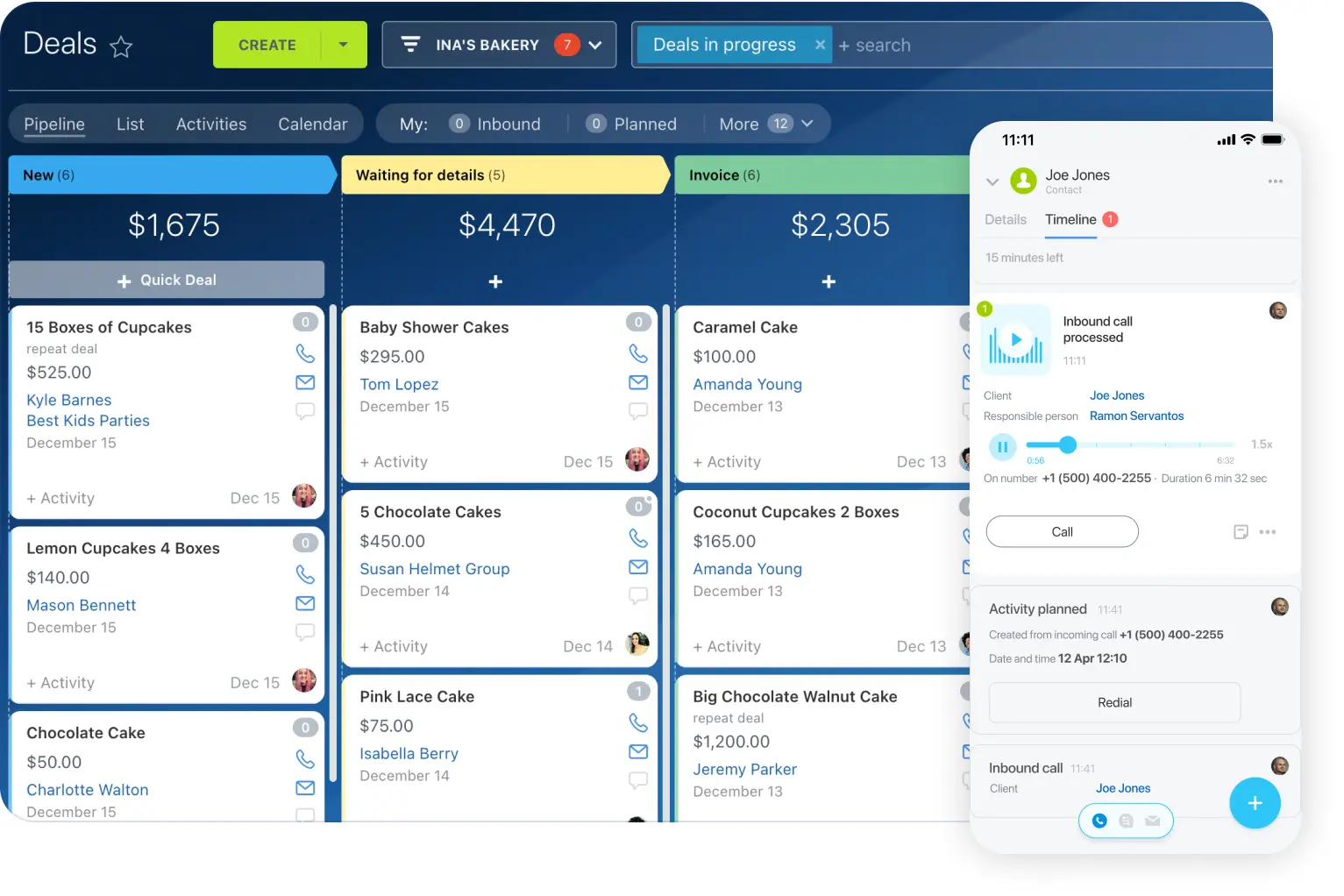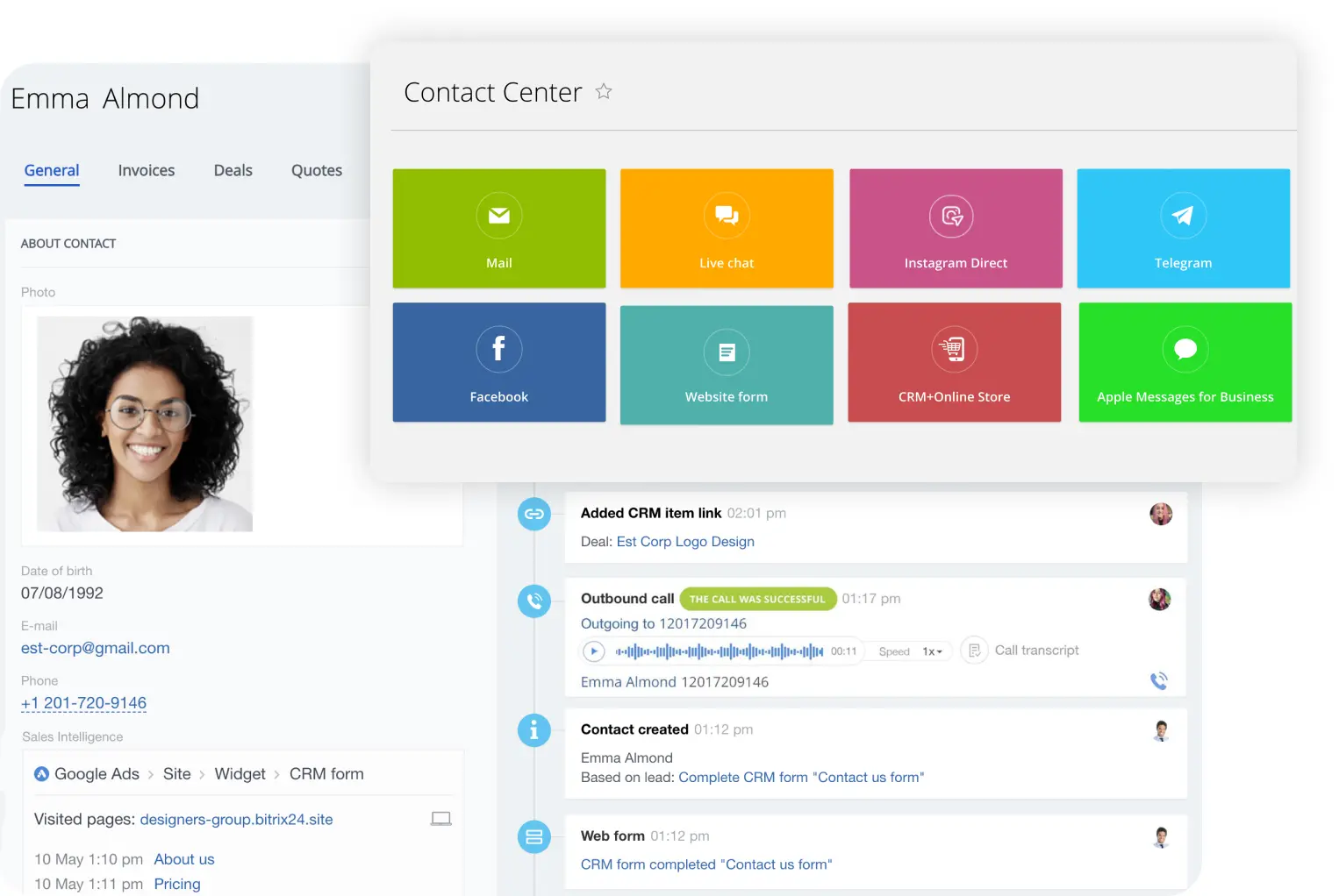 Birden çok kanal aracılığıyla müşteri adayları oluşturun: web formları, canlı sohbetler, telefon görüşmeleri veya sosyal medya ve bunların CRM'nize otomatik olarak eklenmesini sağlayın.