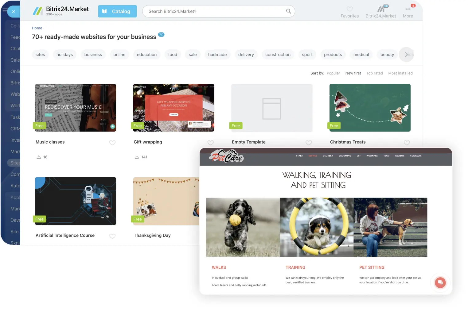 Sektöre özel şablonlarımızdan birini seçin ve bunun üzerine kendi sitenizi oluşturun. Herhangi bir kodlama becerisi gerektirmez.
