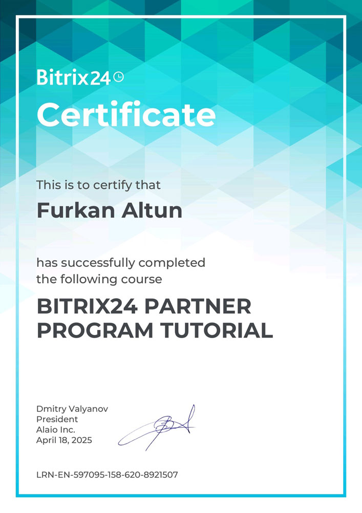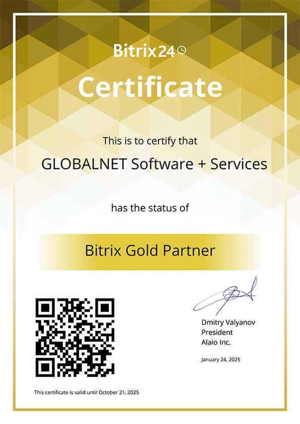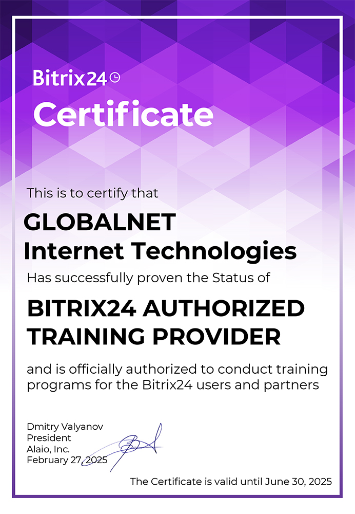 Globalnet gerekli tüm Bitrix24 Sertifikalarına sahiptir.